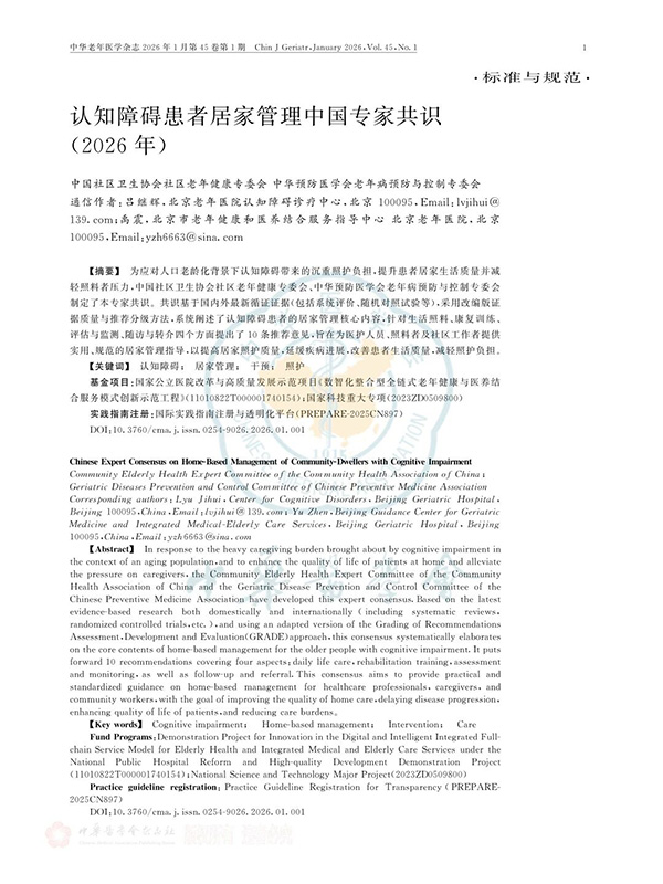 近日,由北京老年医院院长禹震、认知障碍诊疗中心主任吕继辉牵头,联合全国数十位老年医学、神经病学、精神病学、全科医学、康复医学及中医学等多学科权威专家共同编撰的《认知障碍患者居家管理中国专家共识(2026)》,在《中华老年医学杂志》2026年首期头条重磅刊出。这一国家级共识的发布,填补了我国认知障碍患者居家管理普适性规范的空白,为破解人口老龄化背景下的“居家照护难”问题提供了科学系统的解决方案。
