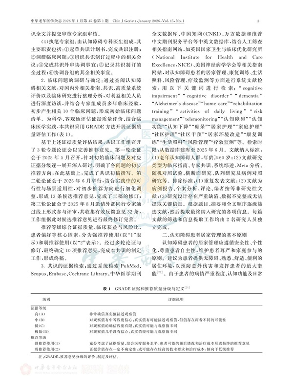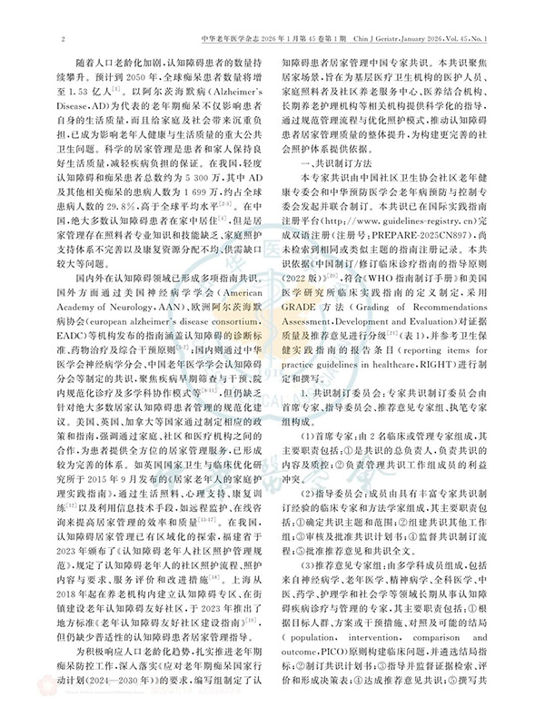 作为老年医学领域的标杆机构,北京老年医院携手中国社区卫生协会社区老年健康专委会、中华预防医学会老年病预防与控制专委会,共同牵头开启了《共识》的制定工作。目前,《共识》已顺利完成在国际实践指南注册平台的双语注册流程,成为我国聚焦于认知障碍居家全场景管理的国家级专家共识。在制定过程中,该《共识》严格遵循《中国制订/修订临床诊疗指南的指导原则(2022版)》的规范要求,并采用国际广泛认可的GRADE方法进行证据分级与推荐,从而确保了其内容的科学性、严谨性以及高度的实用性。