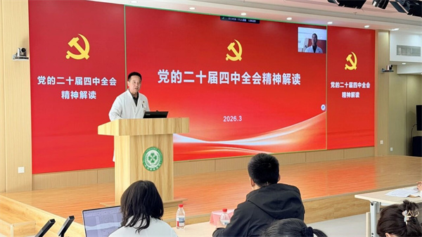 为全面深入学习领会党的二十届四中全会精神,2026年3月9日下午,院党委组织开展党的二十届四中全会精神专题讲座,邀请怀柔区委党校办公室主任祝传佳作“接续奋斗推进中国式现代化—党的二十届四中全会精神解读”专题授课,领导班子成员、党支部书记、中层干部、护士长、统战人士代表现场参会,各支部组织党员、职工线上观看,会议由党委书记陈兴德同志主持。