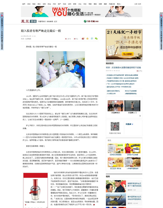 上一篇: [汉丰网] 临终关怀病房护士 陪入院者有尊严地走完最后一程