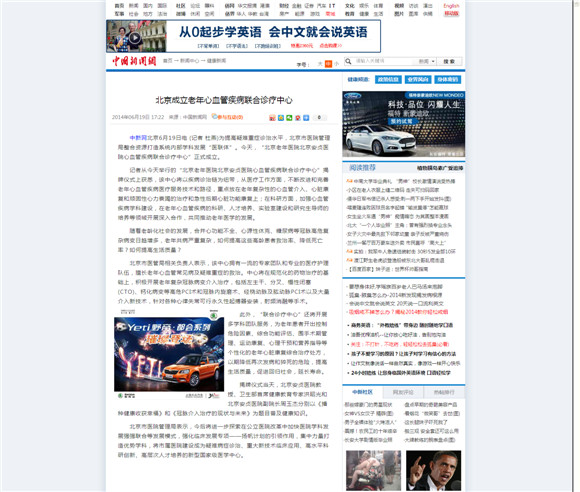 [中新网]北京成立老年心血管疾病联合诊疗中心