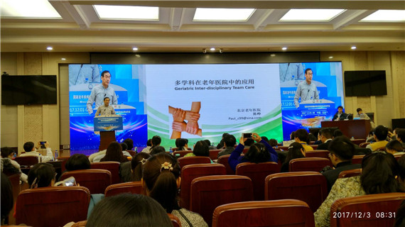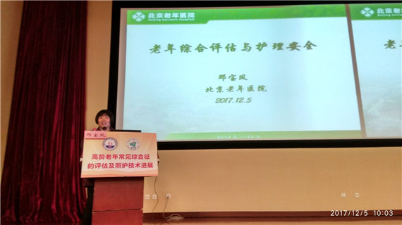 中国老年医学国际高峰论坛于2017年12月2日-6日在解放军总医院举办,本次活动的主题为“高龄老年常见综合征评估及照护技术进展”,我院院长陈峥、护理部主任邓宝凤分别进行了“老年医疗中多学科团队模式探索”、“老年综合评估与护理安全”的主题发言。此次学术活动的实践环节 “老年综合评估案例实操观摩”由我院承担,观摩人员约400人,分别来自于全国各地99家不同级别的医疗机构和养老机构。